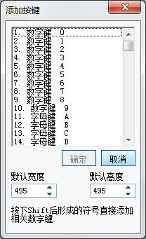 - 添加按键:在弹出的窗体中,选择需要增加的按键,点击确定。按钮增加后,点击选中,可以拖动位置,改变大小,也可通过底部显示的信息区域进行调整。