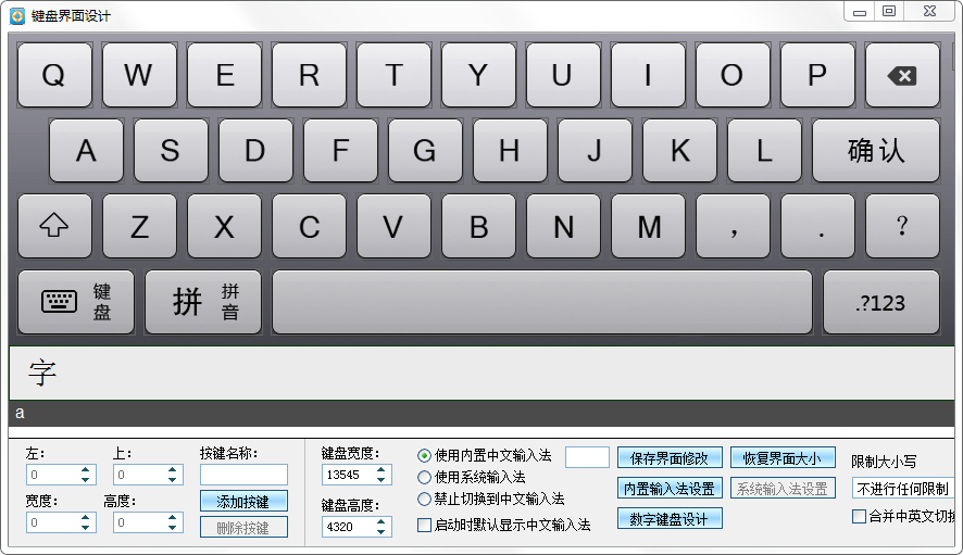 - 一般此处选择使用内置中文输入法。可以通过底部功能区域控制键盘的高度与宽度。