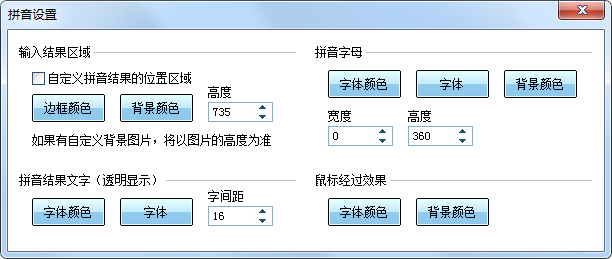 - 输入法颜色,字体设置:用于设置显示当前输入法名称名称的字体、颜色、大小。所在位置请直接选中后拖动。