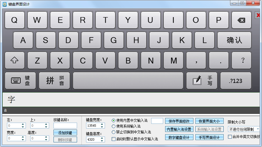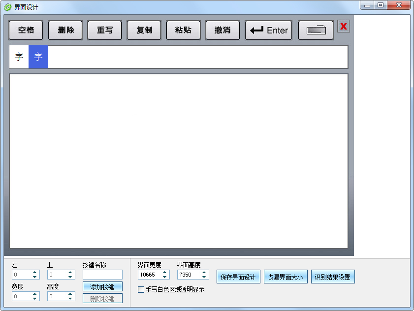 - 在软键盘设计界面点击“手写界面设计”按钮,可以打开手写界面设计的程序界面,如下: