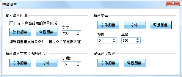 - 输入法颜色,字体设置:用于设置显示当前输入法名称名称的字体、颜色、大小。所在位置请直接选中后拖动。